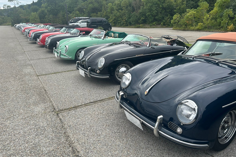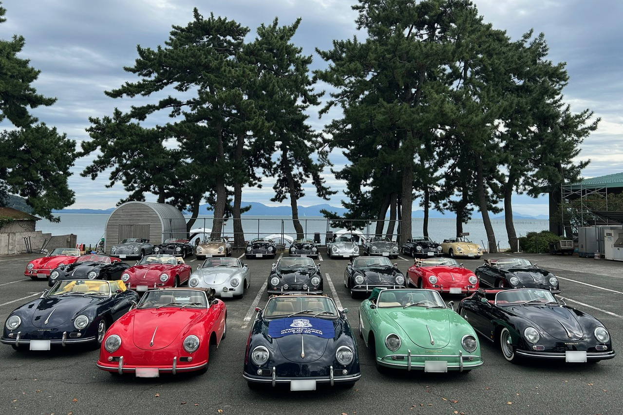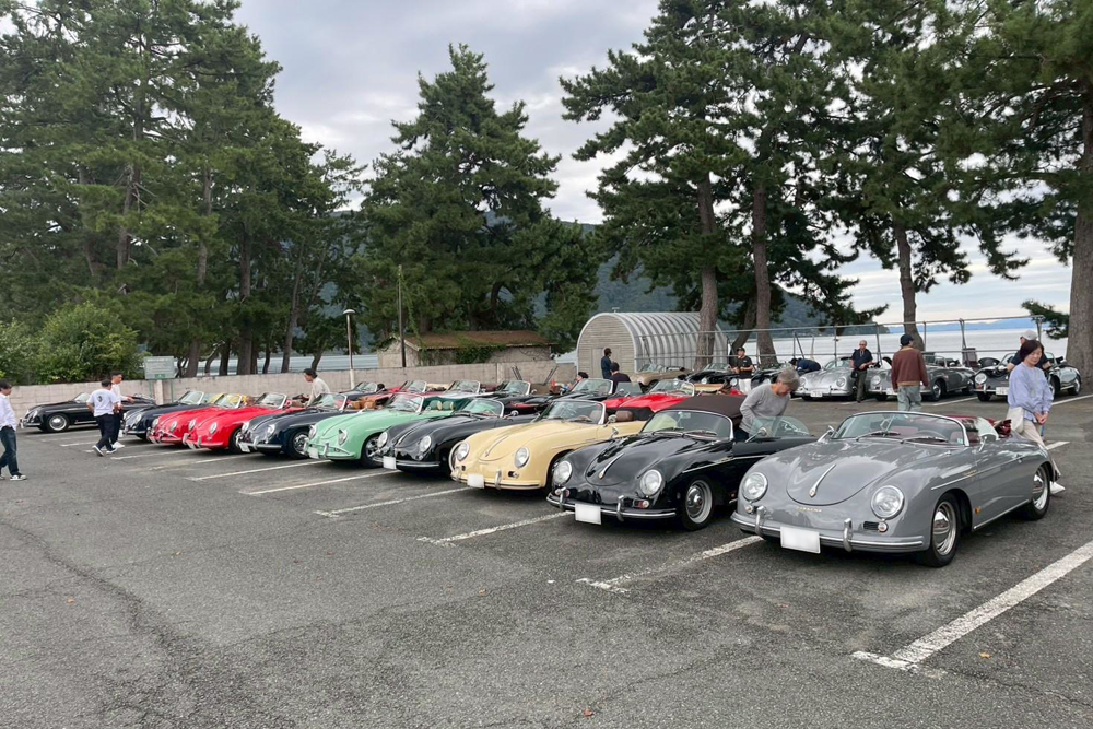 その後、多数の来客で賑わっている菓子メーカー運営のラコリーナ近江八幡へ。広い駐車場には横一列で並ぶ356は壮観な景色でした。