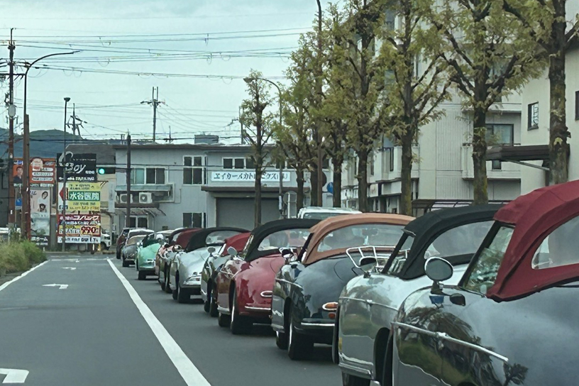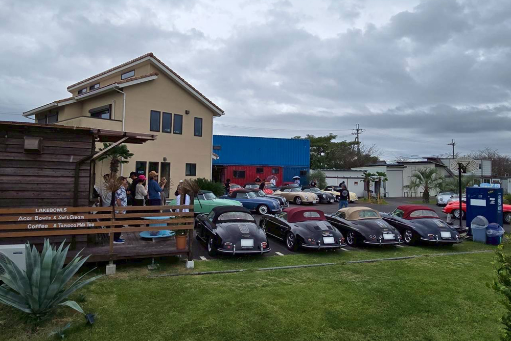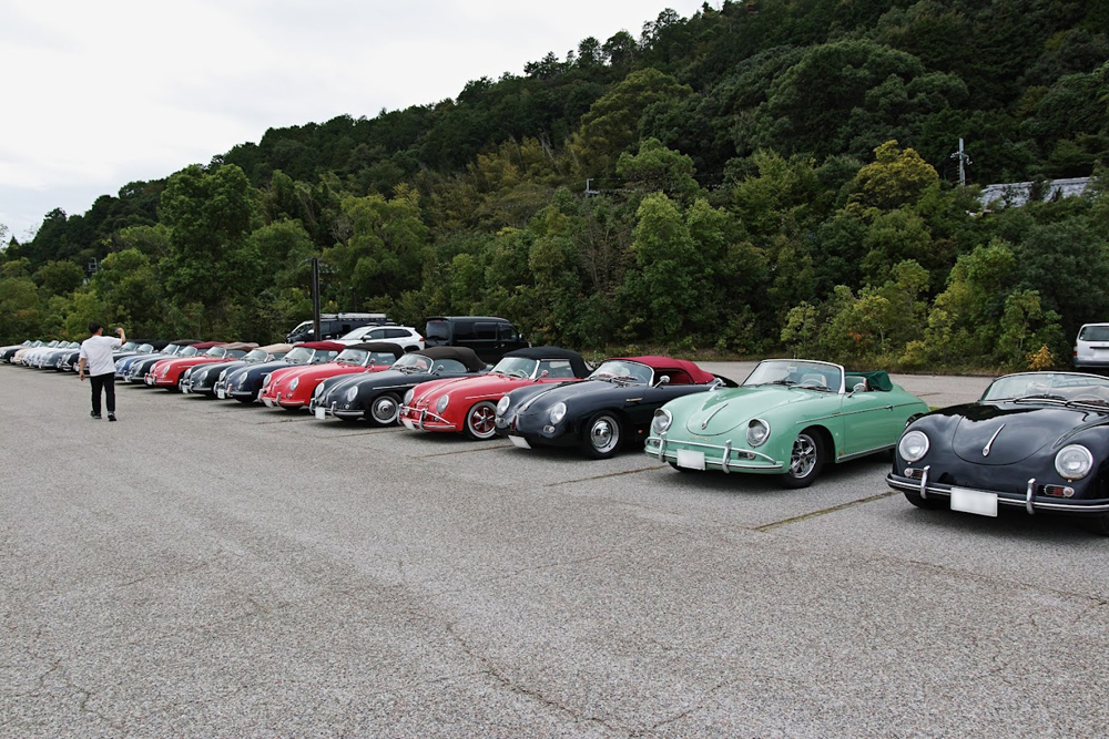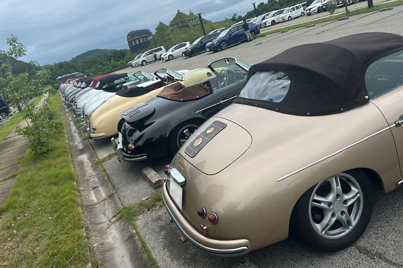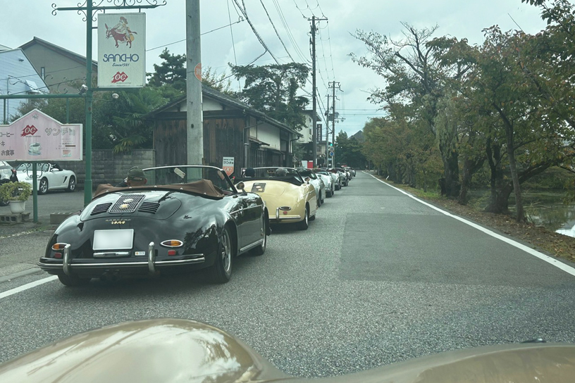 その後、多数の来客で賑わっている菓子メーカー運営のラコリーナ近江八幡へ。広い駐車場には横一列で並ぶ356は壮観な景色でした。